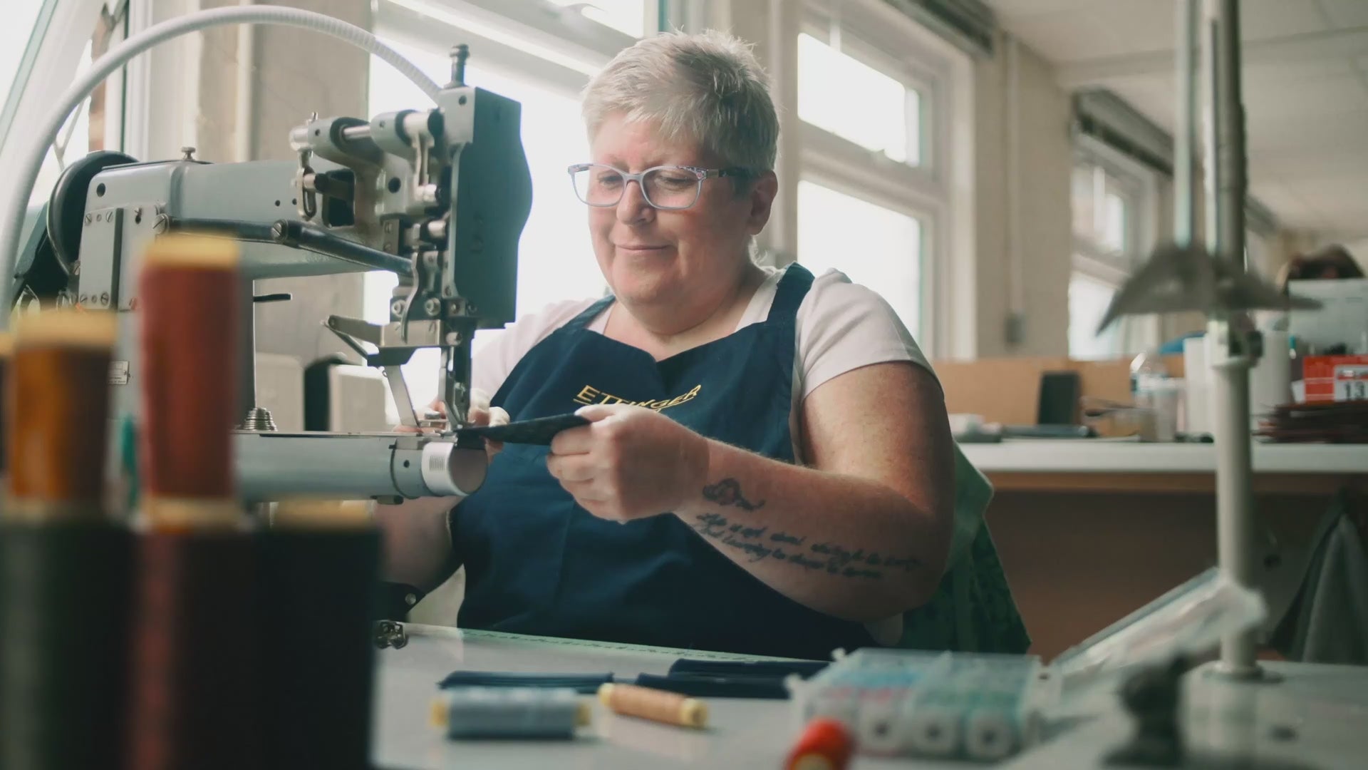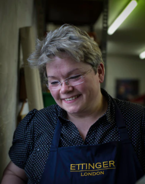 Meg ensures our quality control is second to none. She's been working in the the Ettinger factory since she was 16, so her eagle eye is certainly well trained. In the factory she ensures our production runs smoothly and manages a team of outworkers.
