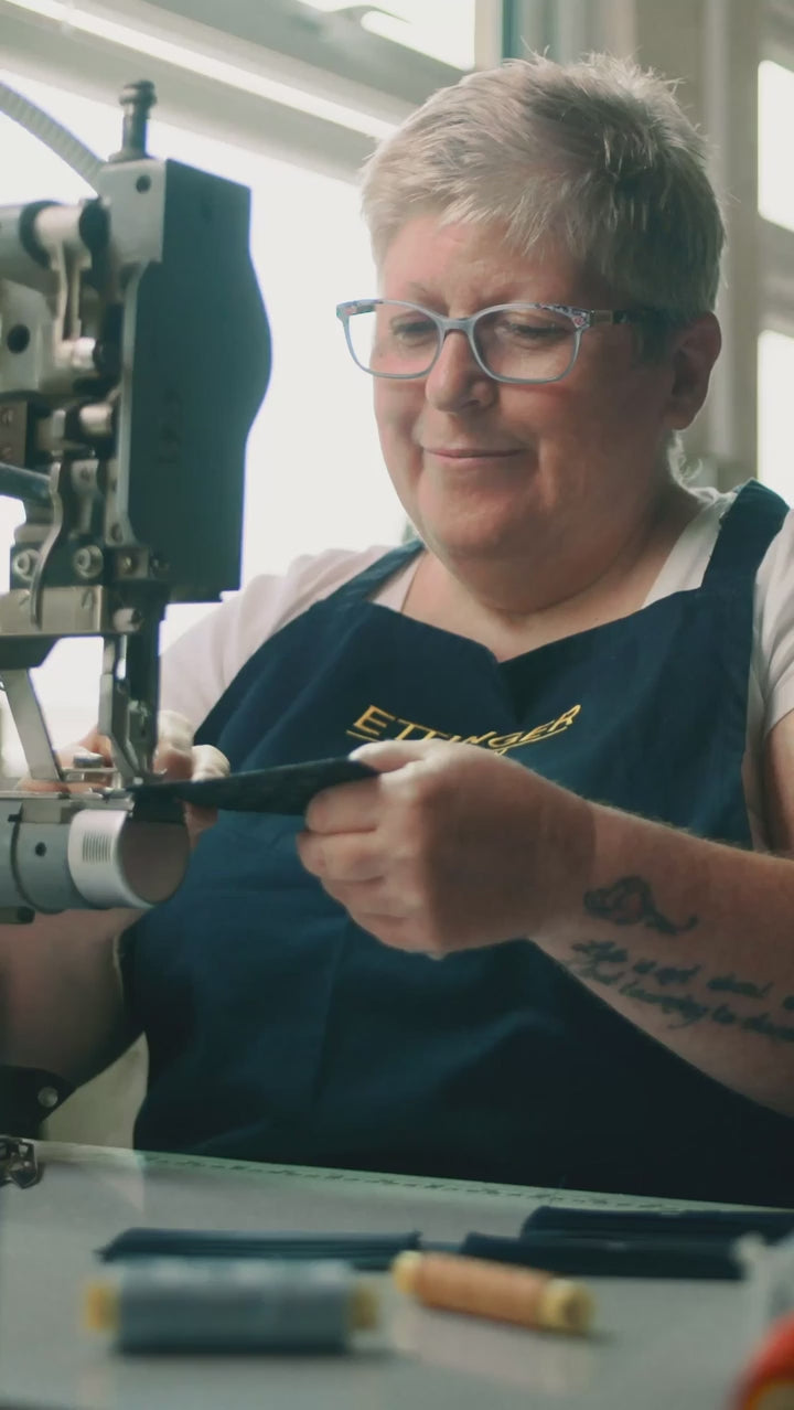 Ettinger takes great pride in its craftspeople. Among the last to still make leather goods in the UK, the quality of our goods and attention to detail are paramount to our success. We continuously improve our quality control to ensure the highest standards throughout the production process.